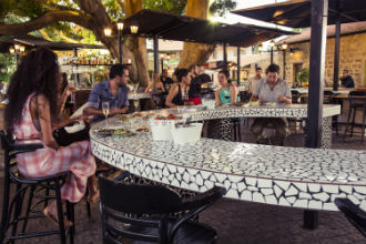 ויקי - מטבח הטאפאס, ממוקם בצדה הימני של החצר ומאופיין בישיבה לצד שולחנות אינטימיים, מוסיקה רגועה ופתיחה מוקדמת (משעות הצהריים).
