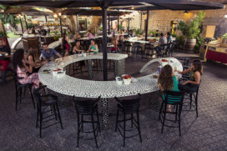 כריסטינה - בר היין הממוקם מעברה השני של החצר מאופיין בישיבת בר גבוהה מסביב לגן פסלי פסיפס שעוצב בהשראת פארק גואל המפורסם בברצלונה, במוסיקה ספרדית קצבית, במבחר של למעלה מ-120 יינות שונים ובפתיחה מאוחרת יותר (כל ערב החל מ-19:00).